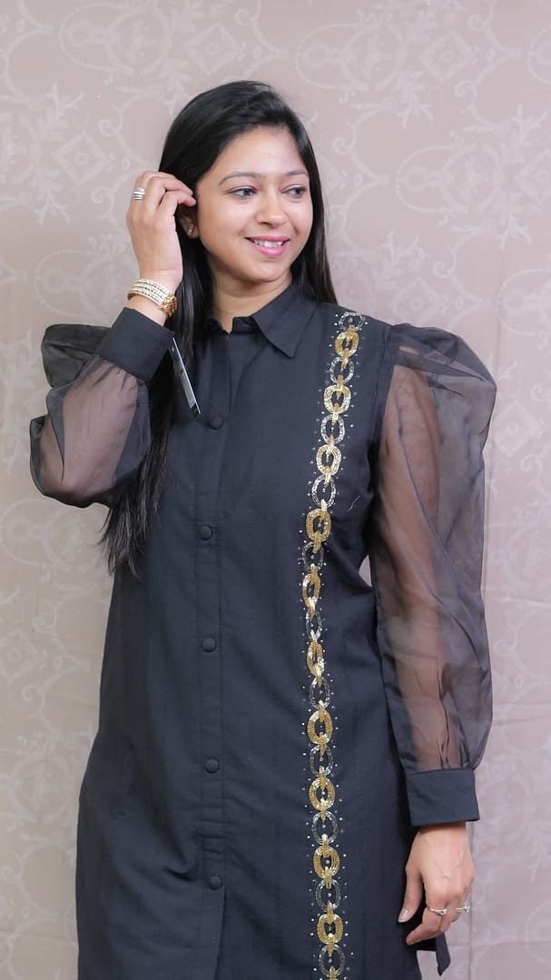 Elevate your style with this Black Tissue Full Sleeves Co-Ord Set. Crafted from lightweight tissue fabric, it offers a subtle sheen and flowy drape for an elegant, contemporary look. The full sleeves add a sophisticated touch, making it perfect for both casual and festive occasions.