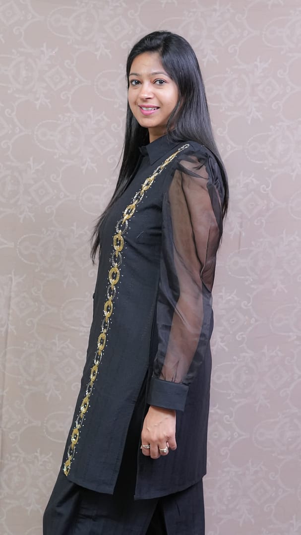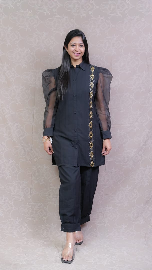BLACK TISSUE FULL SLEEVES CO-ORD SET