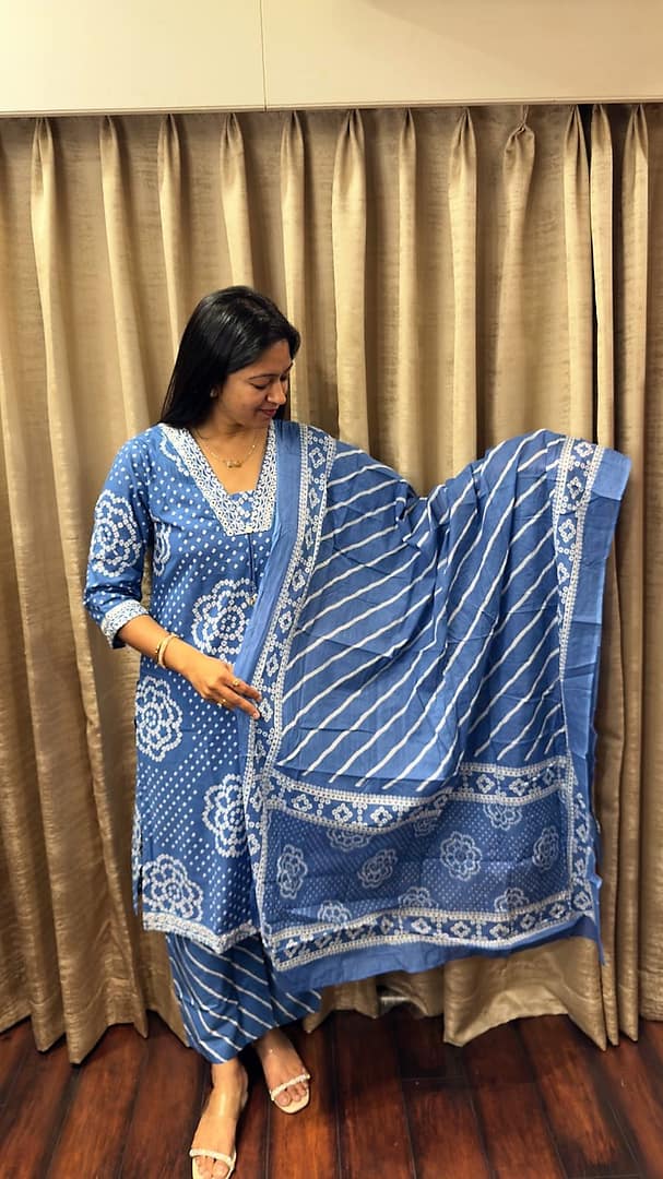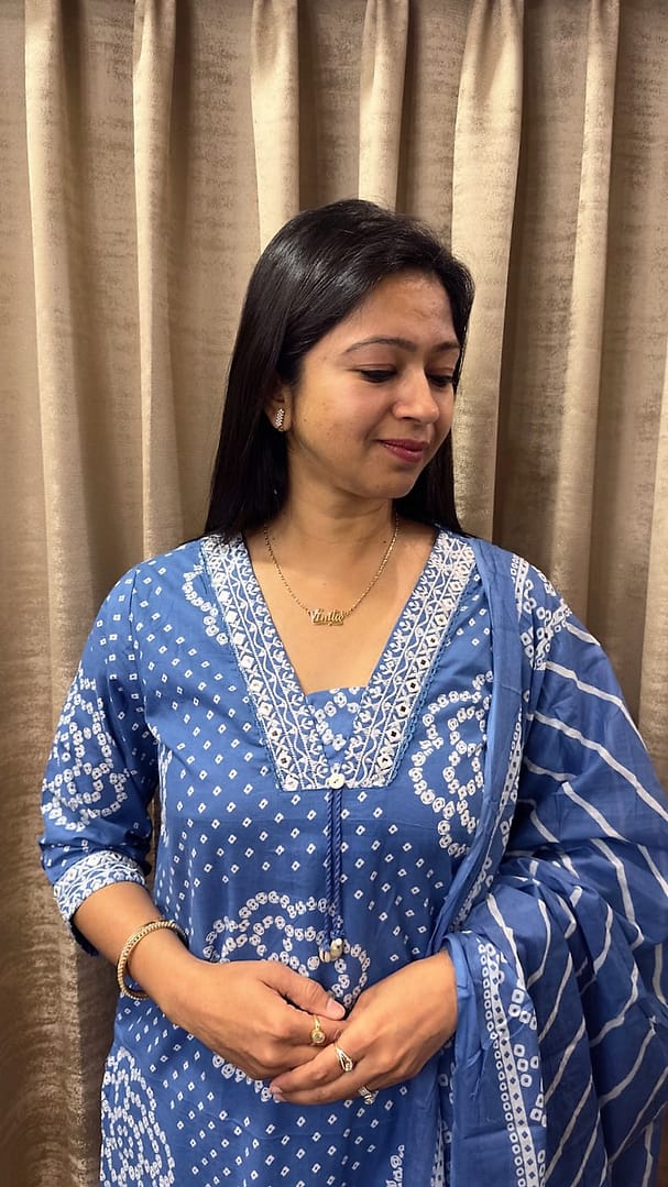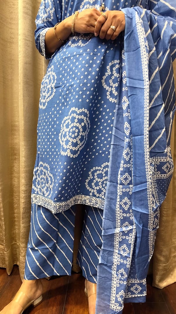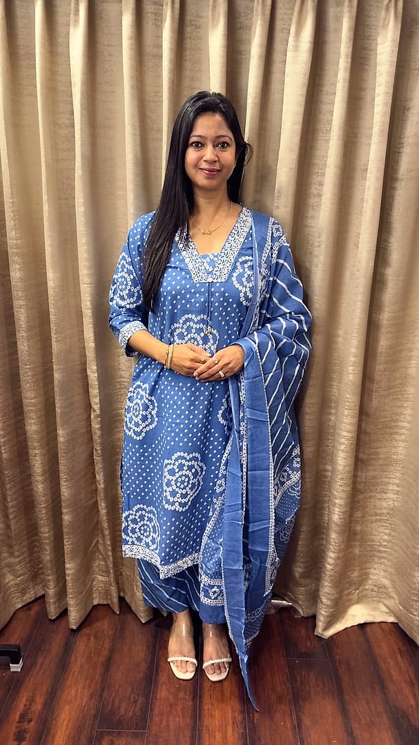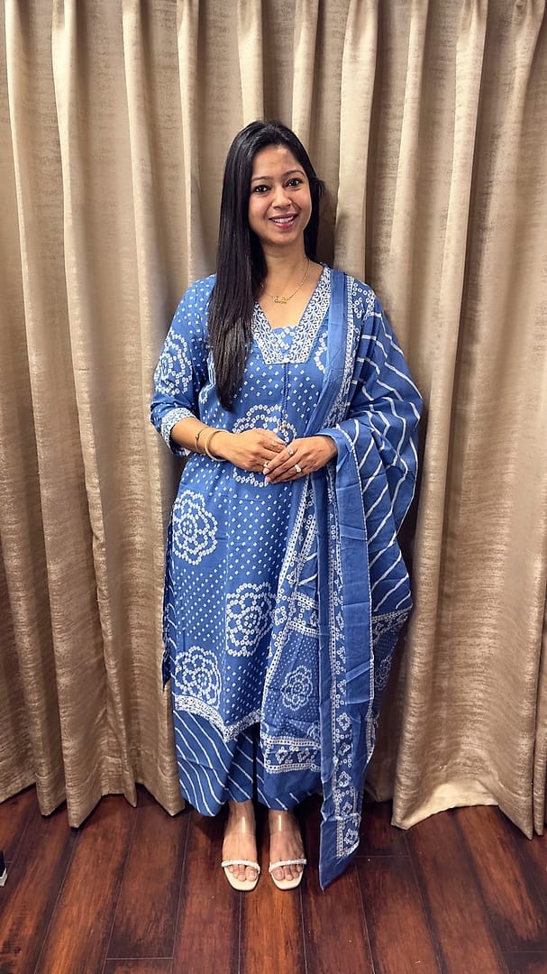 Blue Bandhani kurta suit