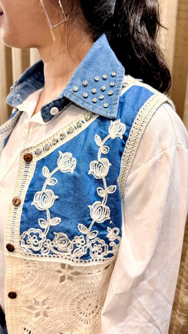 Crafted Shirt From Finest Material With Denim Crochet Jacket