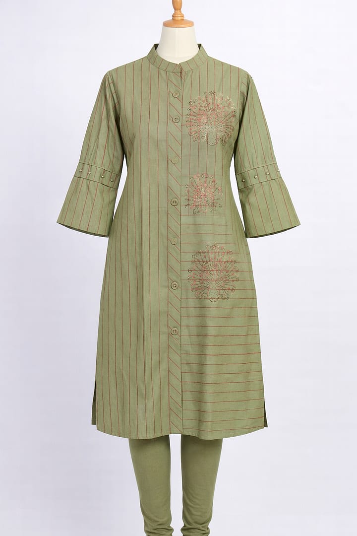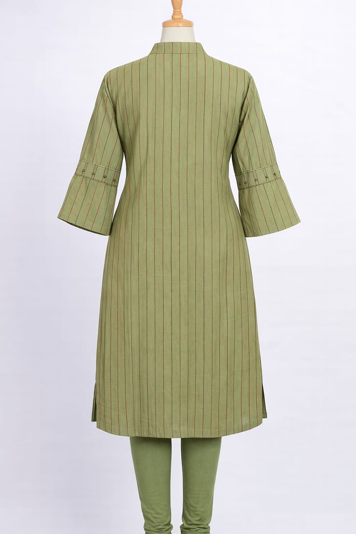 Add effortless style to your wardrobe with our Green Stripe Kurta Set, designed to bring a fresh and contemporary vibe to your everyday look. The subtle green stripes create a modern, chic aesthetic while keeping it versatile for casual and semi-formal occasions.