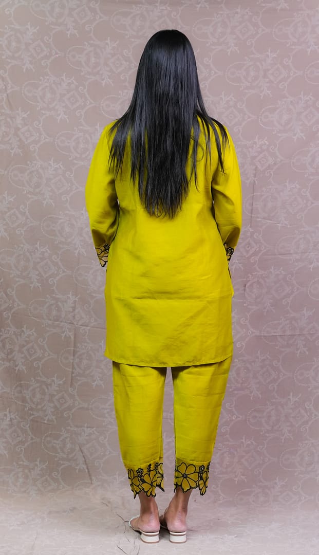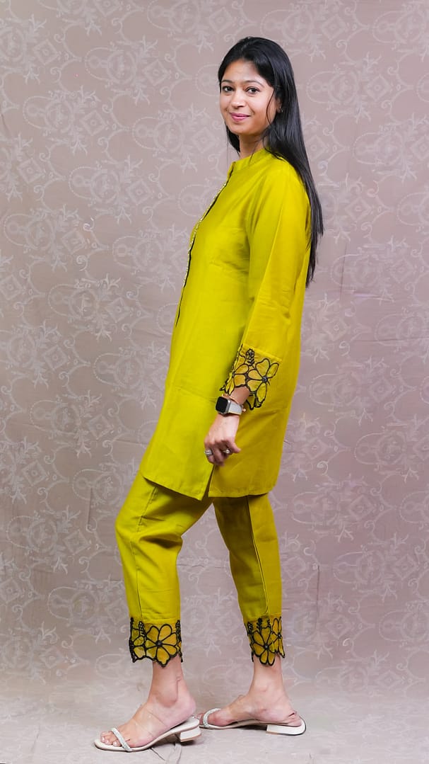 Add a vibrant and stylish touch to your wardrobe with this Mehendi Green / Purple Co-Ord Set. Featuring a refreshing combination of green and purple shades, this coordinated set offers a perfect blend of comfort and contemporary ethnic style.