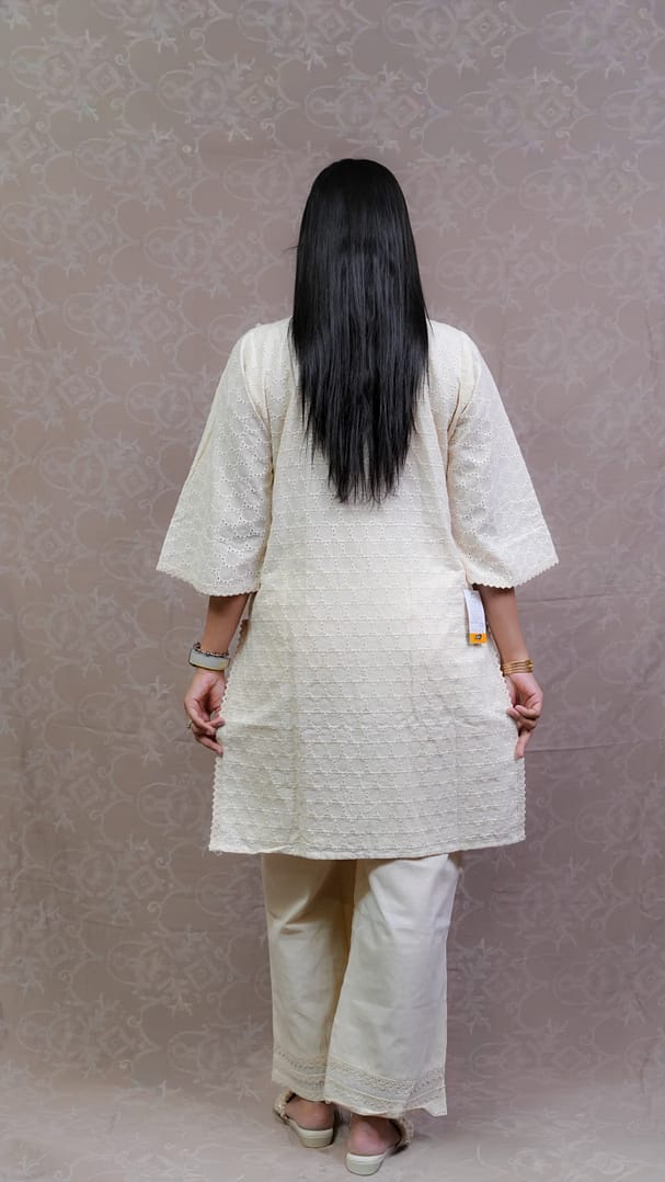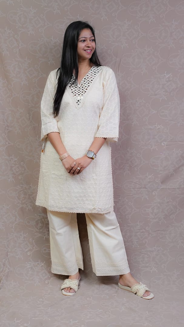 Elevate your everyday style with this elegant Off White Shifali Co-Ord Set. Designed with a graceful silhouette and subtle detailing, this set offers a perfect blend of sophistication and comfort. The soothing off-white shade adds a timeless charm, making it a versatile addition to your wardrobe.