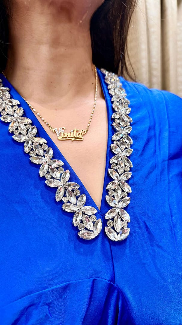 Pure Satin Silk With Heavy Stone Neck Work (Single pc)