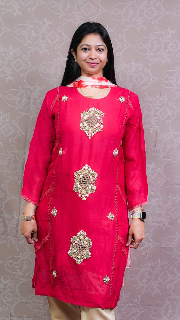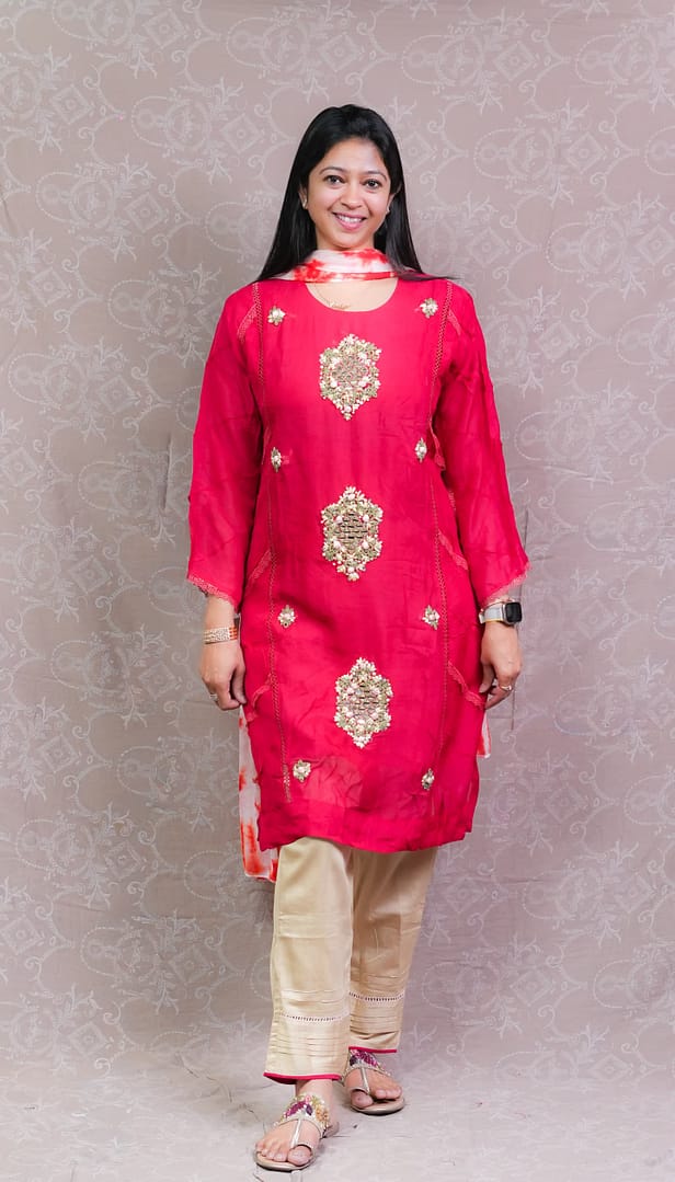 Add a touch of classic elegance with this Red Beige Full Suit. Featuring a beautiful blend of red and beige tones, this outfit brings a graceful and sophisticated look, perfect for festive occasions and family gatherings.