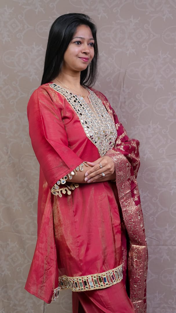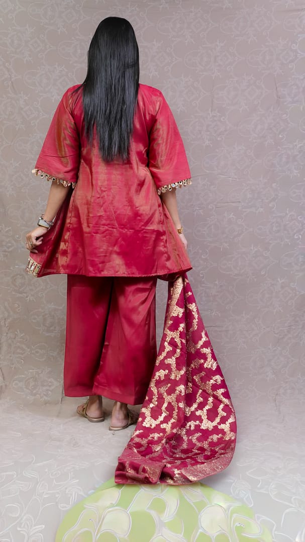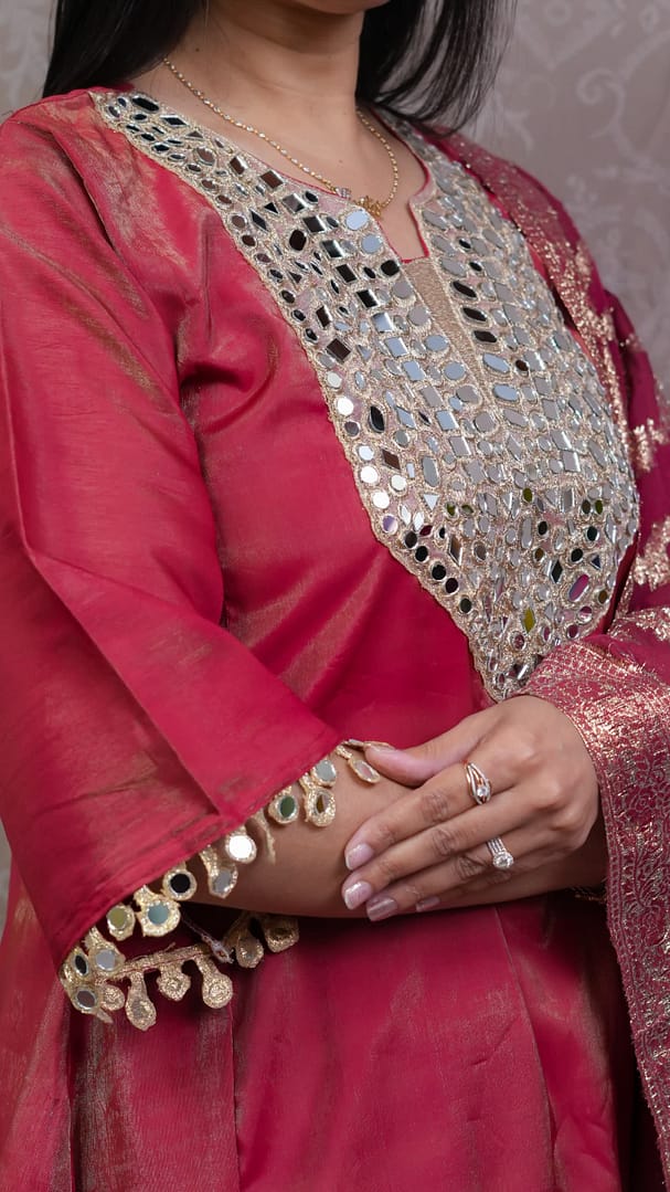 RED SHIMMER ETHNIC FULL SUIT