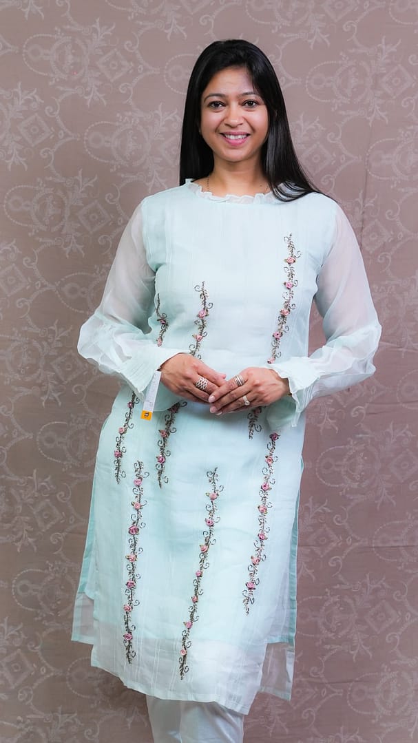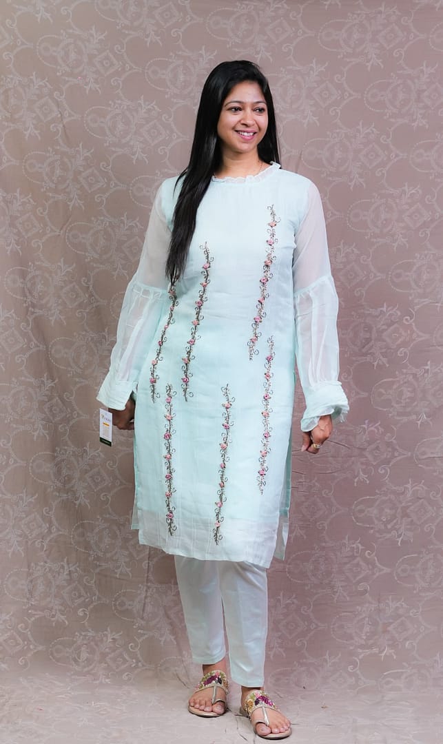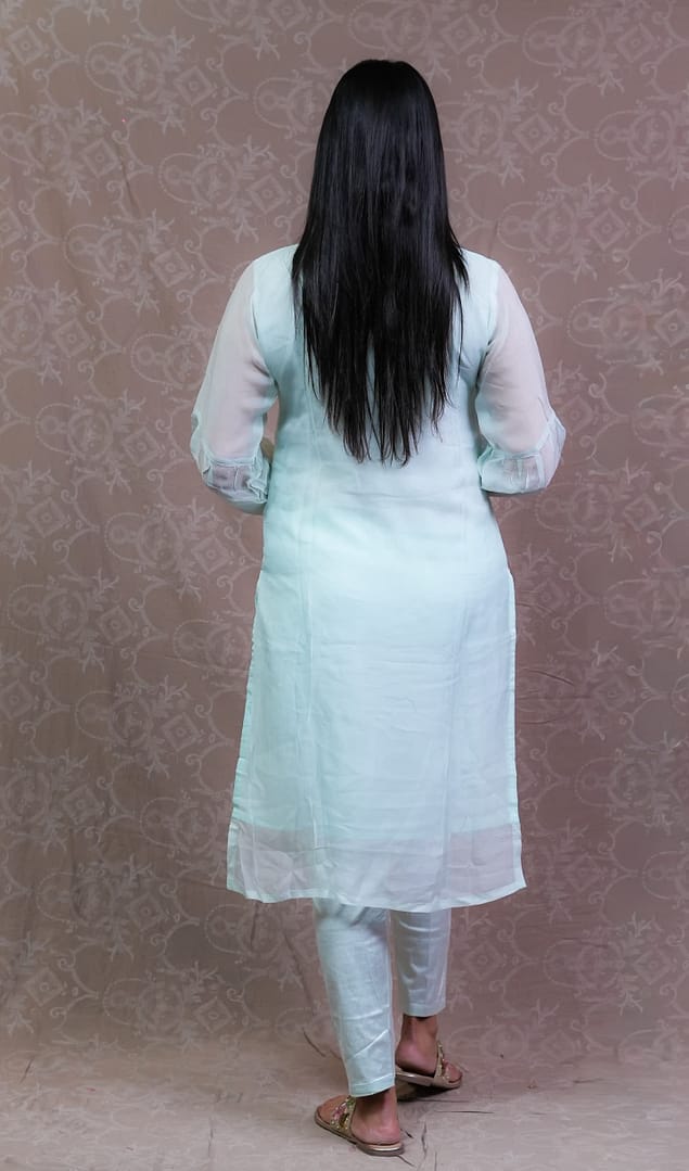 SKY BLUE TISSUE KURTA SET