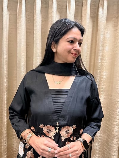 ₹1,900.00BLACKBlack Indo-Western salwar suit.A mid-length black tunic (kurti) with a deep V-neckline that reveals a pleated black inner layer. It is heavily adorned with copper-toned floral embroidery across the front and at the sleeve cuffs.• The Pants: Matching black tulip-style trousers that feature the same floral embroidery along the curved side-slits finished with a delicate gold border.LILAC CO-ORD SET